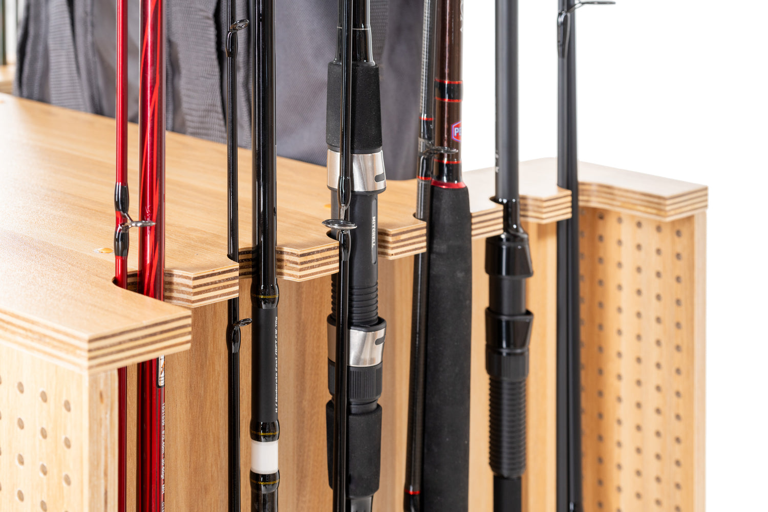 Our high-quality pegboard panels will finally bring order to your fishing gear! The CNC-milled panels offer countless possibilities for the flexible storage of your hooks, lures, pliers, or other accessories.