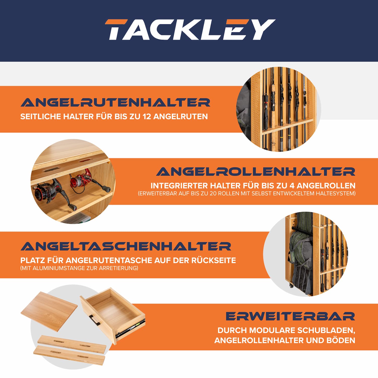 The Tackley fishing cabinet, with a total height of 158 cm, offers plenty of storage space for all your fishing equipment.